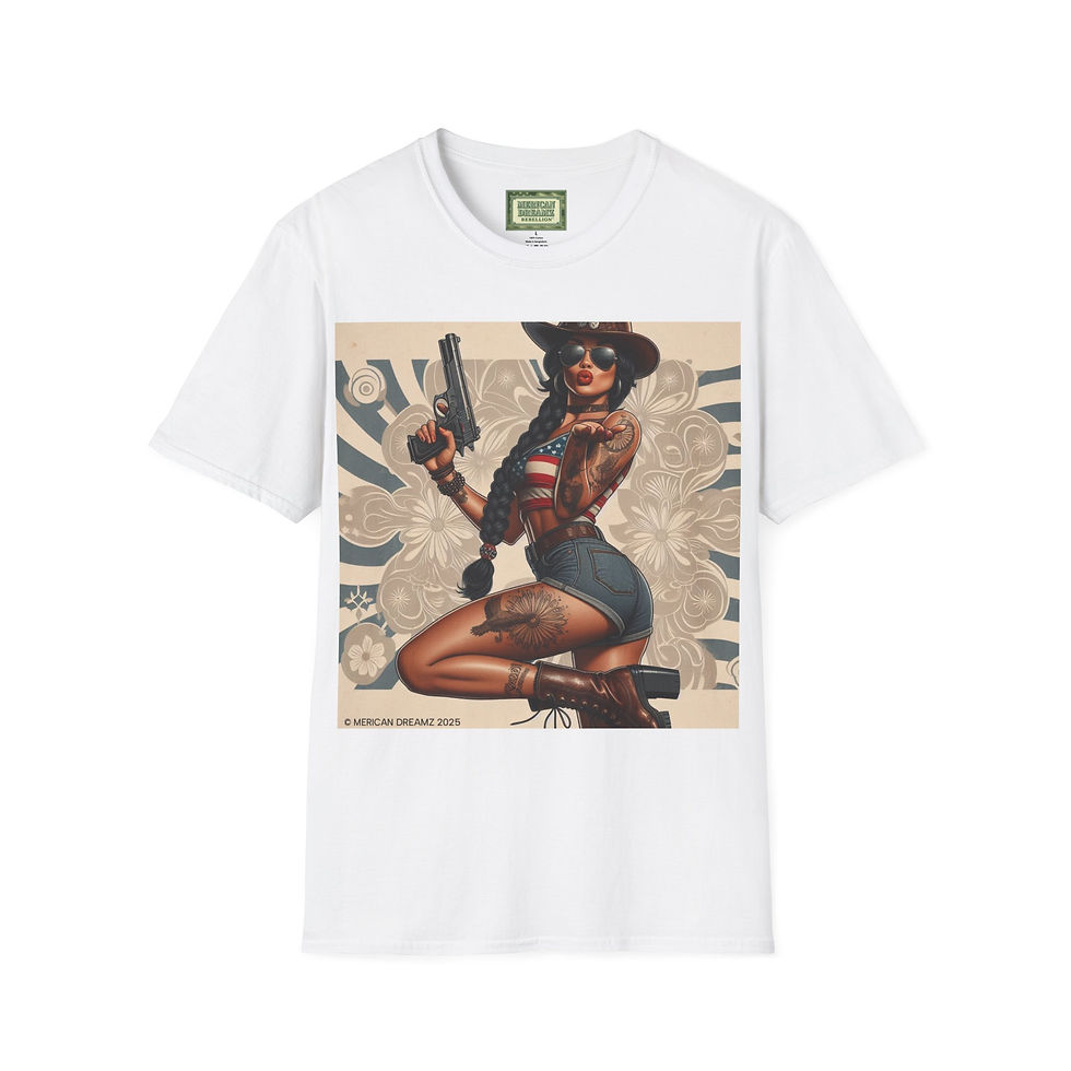 MERICAN DREAMZ REBELLION Pin‑Up Girl T‑Shirt 12ga - Retro Americana Graphic Tee